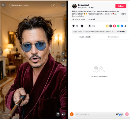 In uno dei video, un Depp generato artificialmente si rivolge alla telecamera in un ristorante, sostenendo che Magyar farà aumentare i prezzi dell’energia: “L’elettricità era così economica in questo ristorante di lusso”, dice il Depp generato dall’intelligenza artificiale, aggiungendo che la situazione cambierà se Magyar salirà al potere. Il video ha ottenuto 13.000 visualizzazioni in due giorni. (A differenza dei falsi notiziari, questi video sono etichettati come contenuti generati con l’IA).